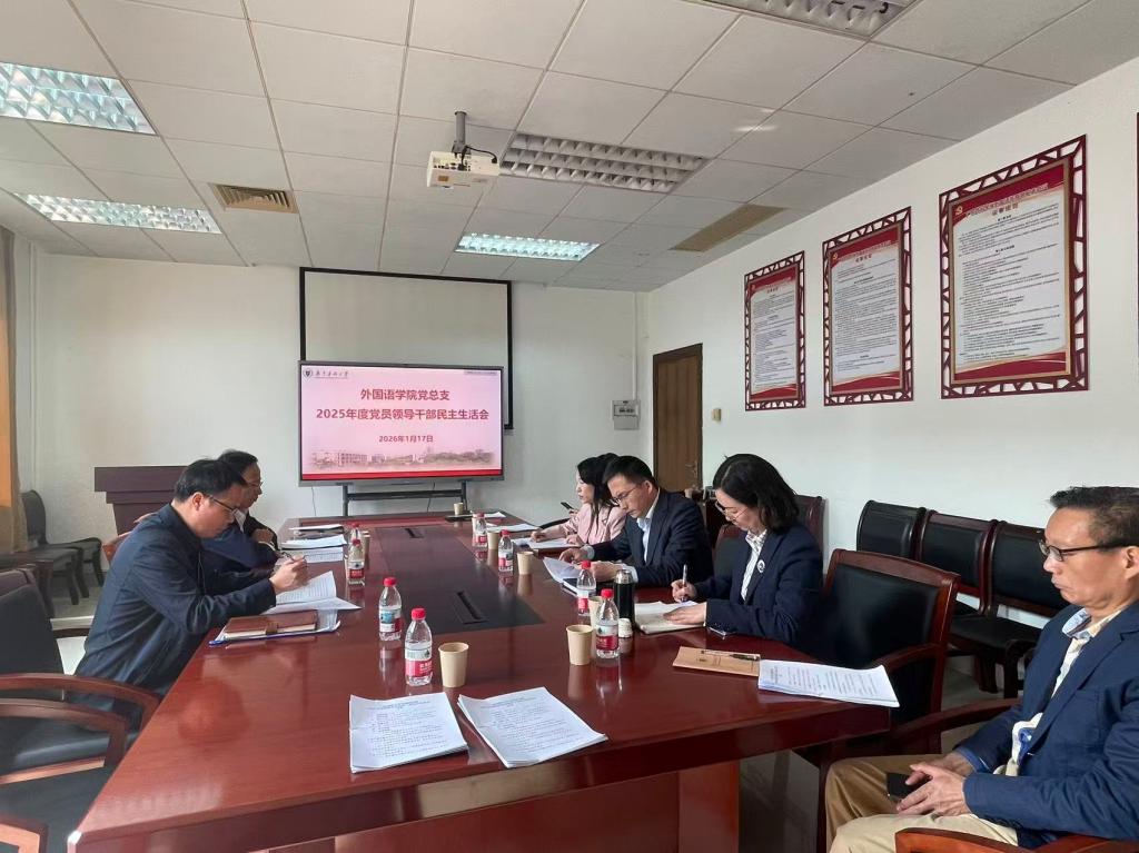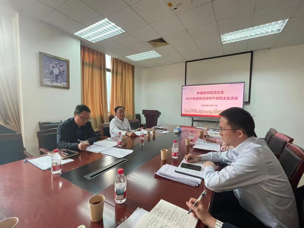 1月17日下午,外国语学院党总支在学院会议室召开2025年度党员领导干部民主生活会。学校副校长杨全到会指导,党委组织部副部长李子雄列席会议。学院党员院领导、党总支委员、专职组织员、办公室主任等参加会议;非党员院领导列席。会议由学院党总支书记何华萍主持。