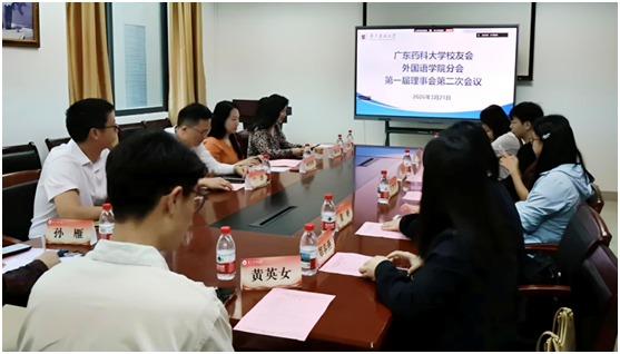 3月21日上午,广东药科大学校友会外国语学院分会第一届理事会第二次会议在大学城校园外国语学院会议室顺利举行。学校校友会秘书处王建壮,外国语学院党总支书记何华萍,学院院长、分会副会长兰涛,学院党总支副书记、分会副会长谢许涛等出席会议,分会理事、校友代表、师生代表等参加会议。会议由谢许涛主持。